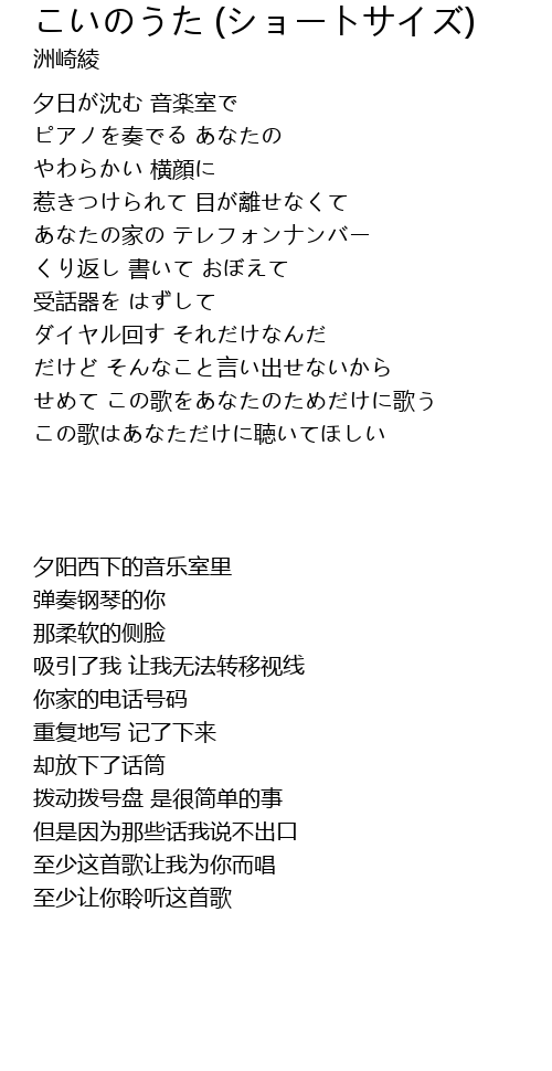 | [01:33.55] | この歌はあなただけに聴いてほしい |