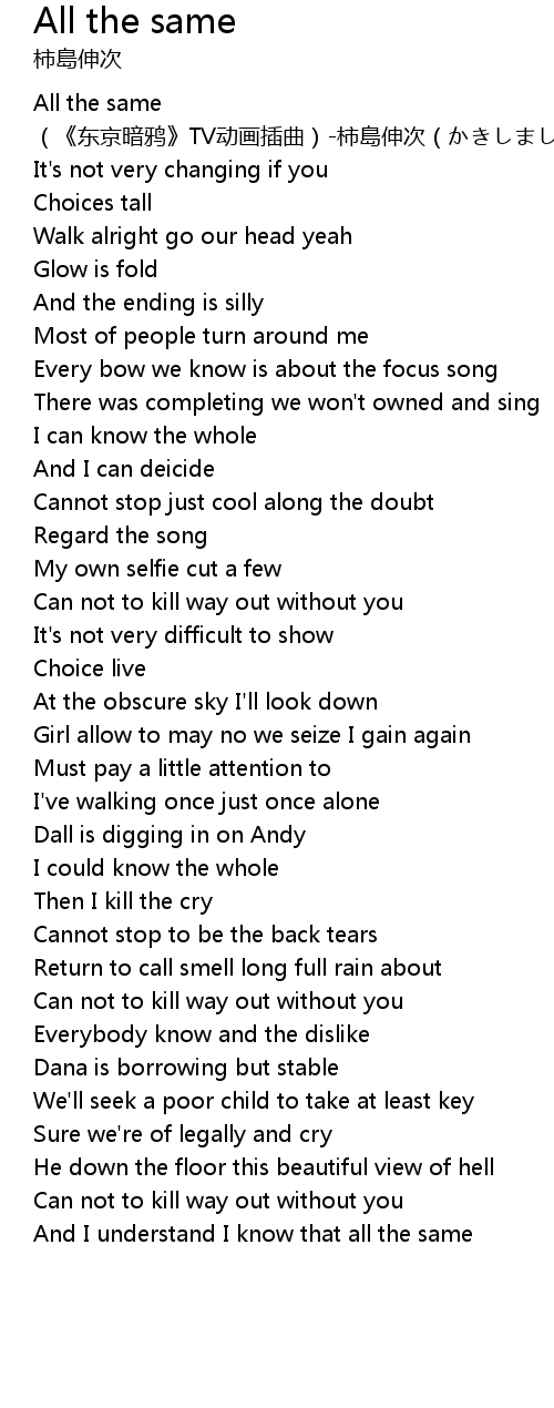 | [00:00.365] | All the same (《东京暗鸦》TV动画插曲)-柿島伸次(かきしましんじ) |
