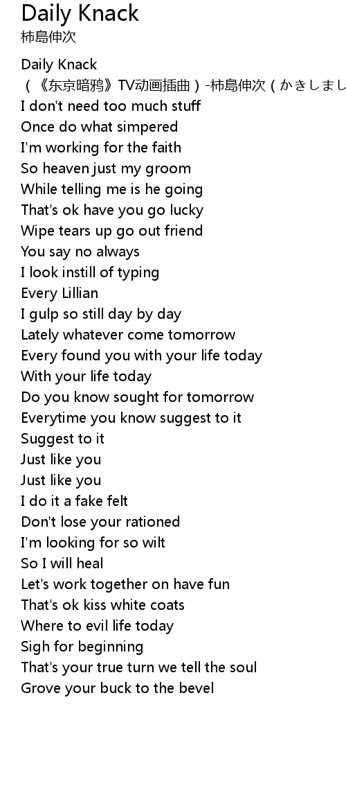 | [00:00.351] | Daily Knack (《东京暗鸦》TV动画插曲)-柿島伸次(かきしましんじ) |