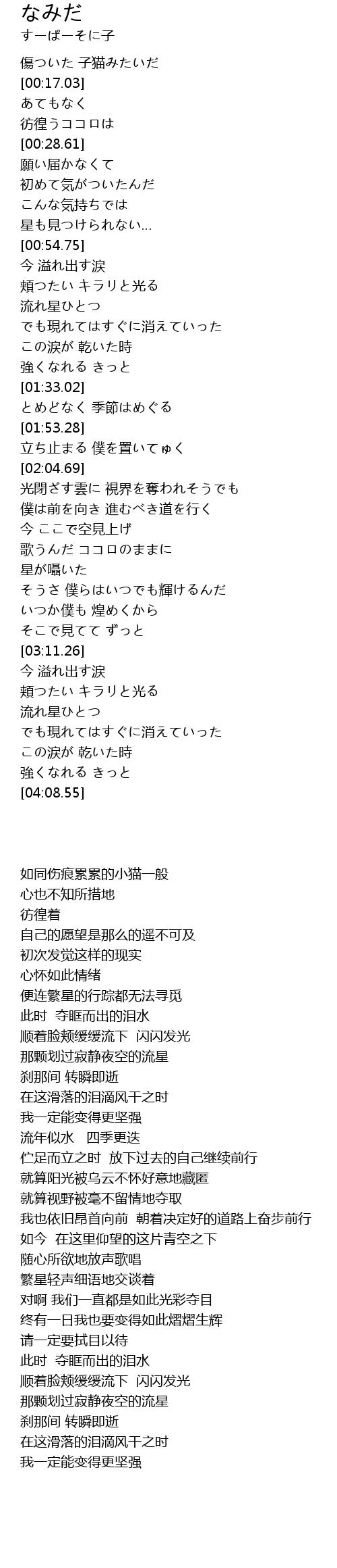 | [03:43.53] | 流れ星ひとつ |