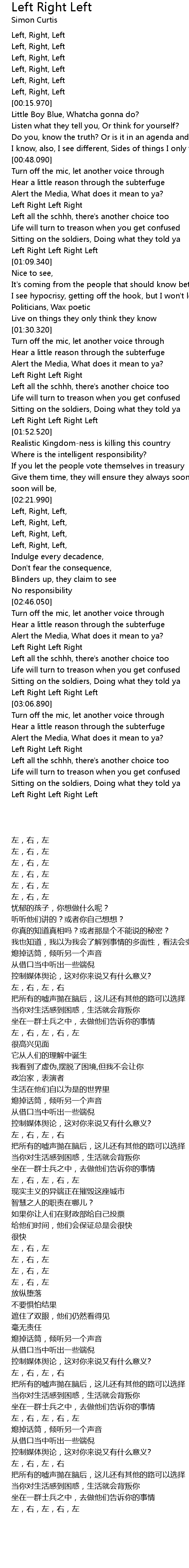 Left Right Left Lyrics