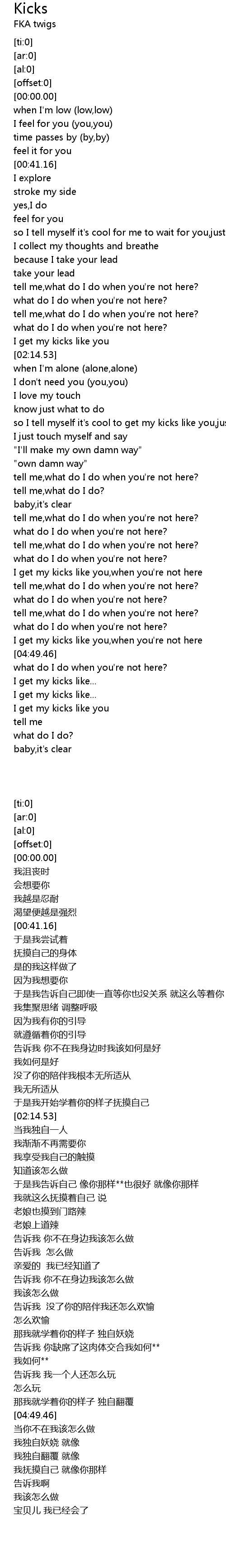 | [04:12.07] | I get my kicks like you,when you're not here |