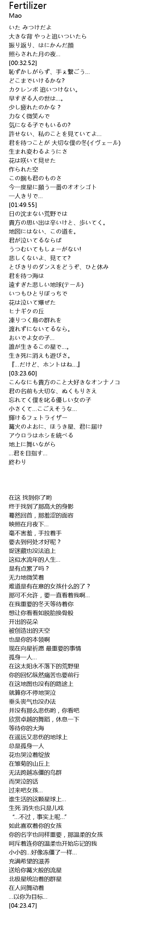 | [04:02.22] | 篝火のよおに、ほうき星、君に届け |