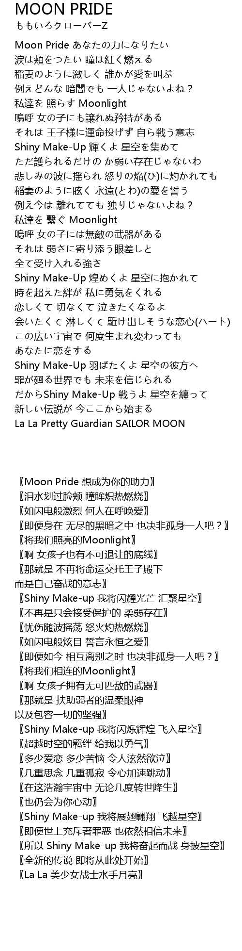 | [00:09.000] | Moon Pride あなたの力になりたい |