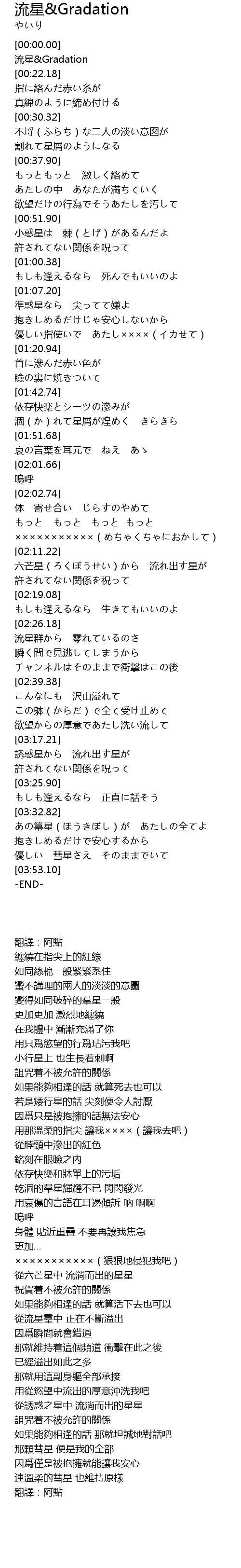 | [02:08.74] | ×××××××××××(めちゃくちゃにおかして) |