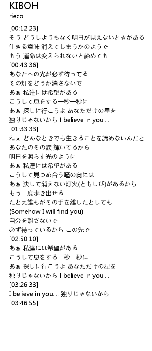 | [03:12.83] | 独りじゃないから I believe in you.... |