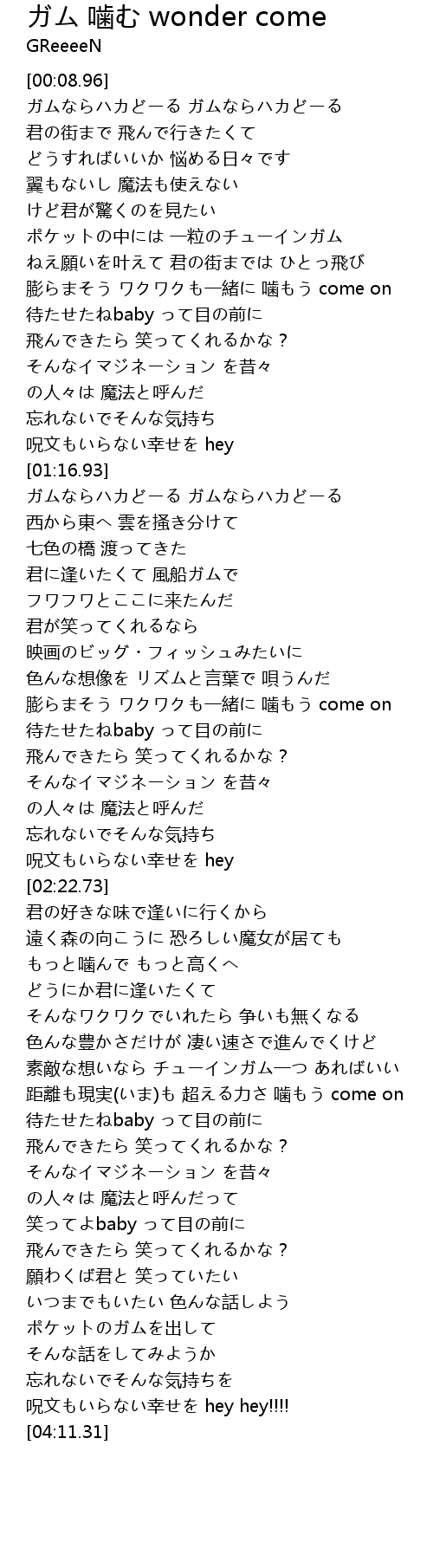 | [00:48.36] | 膨らまそう ワクワクも一緒に 噛もう come on |
