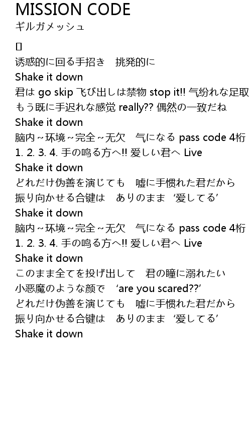 | Song | MISSION CODE |