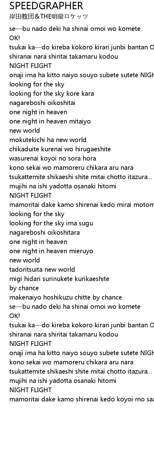 | onaji ima ha kitto naiyo souyo subete sutete NIGHT FLIGHT | |