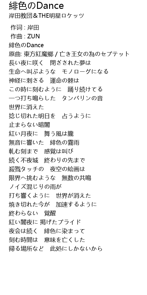 | [00:12.00] | 原曲: 東方紅魔郷 / 亡き王女の為のセプテット |