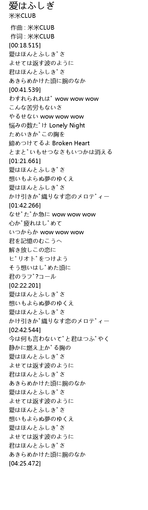愛はほんとふしぎさ |