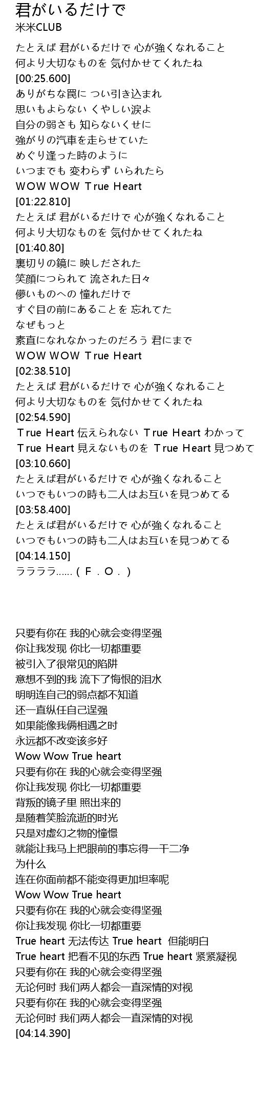 | [02:31.310] | WOW WOW True Heart |