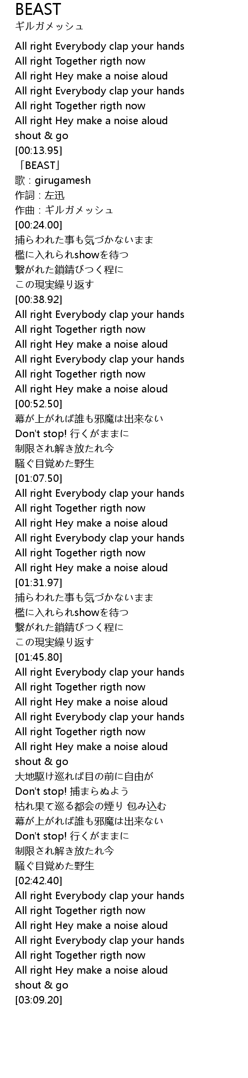 | [00:15.00] | 「BEAST」 |
