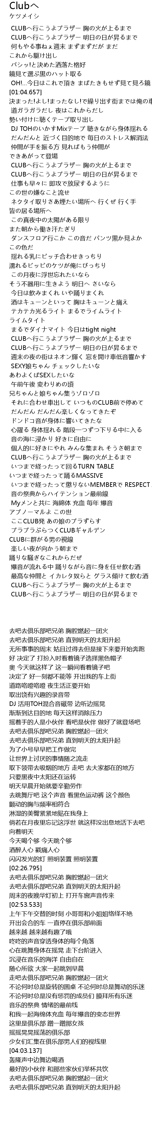 | [04:37.639] | CLUBへ行こうよブラザー 明日の日が昇るまで |