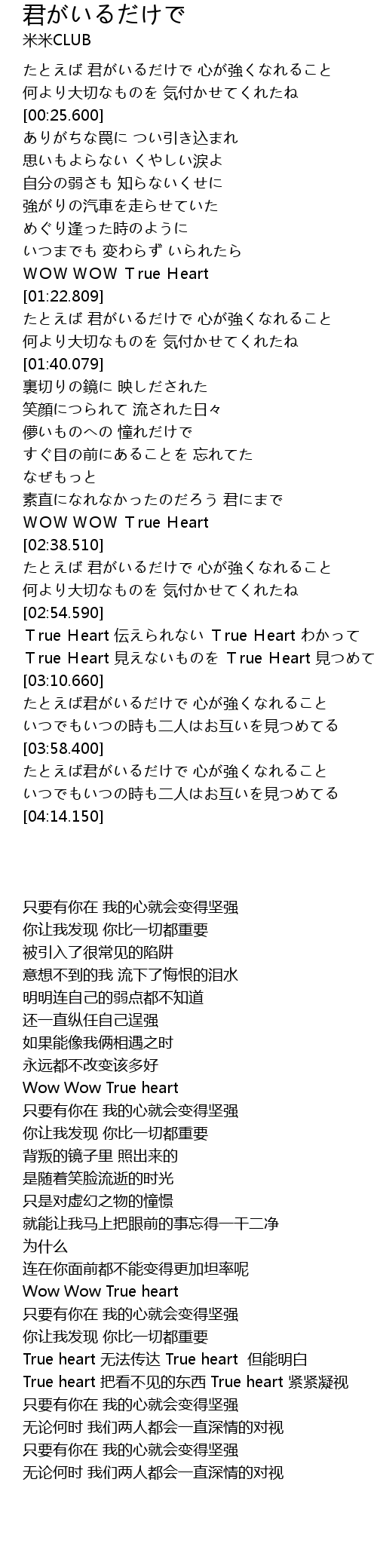 | [02:56.310] | True Heart 伝えられない True Heart わかって |