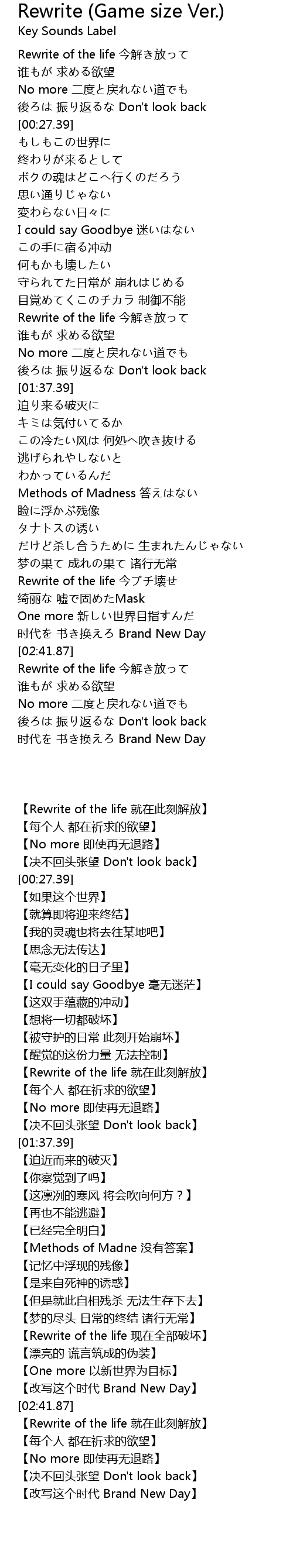 | [02:19.31] | Rewrite of the life 今ブチ壊せ |