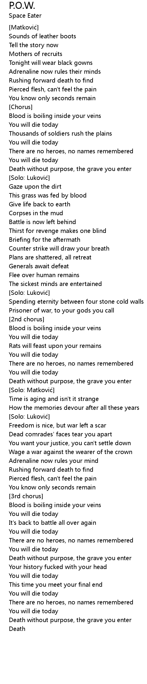 | Prisoner of war, to your gods you call | |