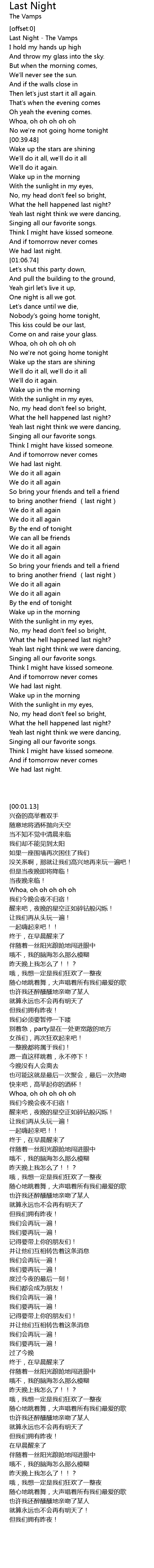 | [00:01.13] | Last Night - The Vamps |