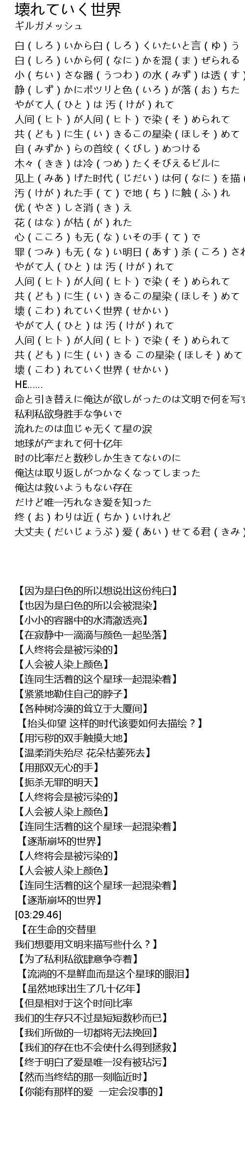| [03:23.21] | 壊(こわ)れていく世界(せかい) |