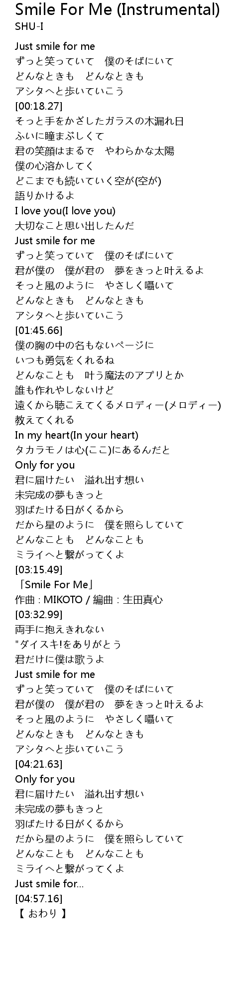 | [03:18.99] | 「Smile For Me」 |