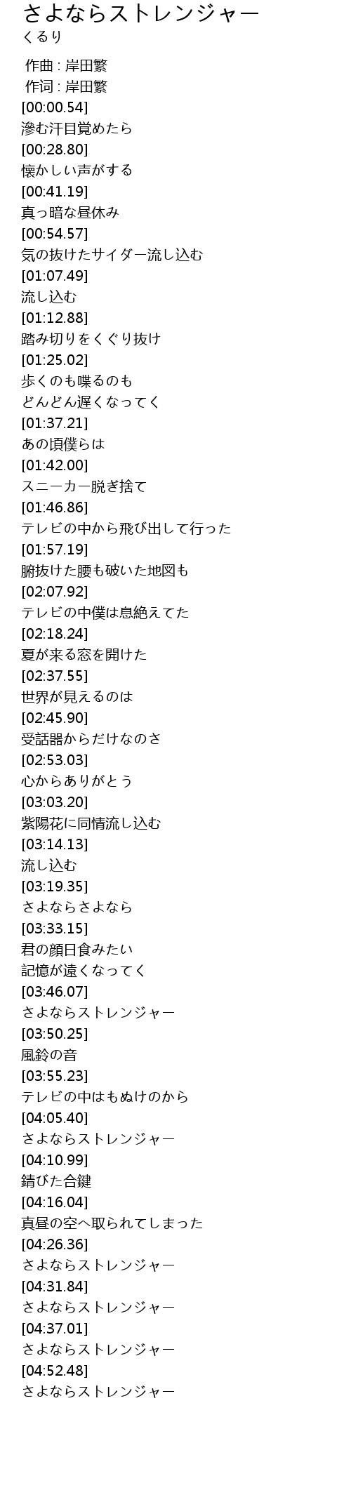 | [04:08.27] | さよならストレンジャー |