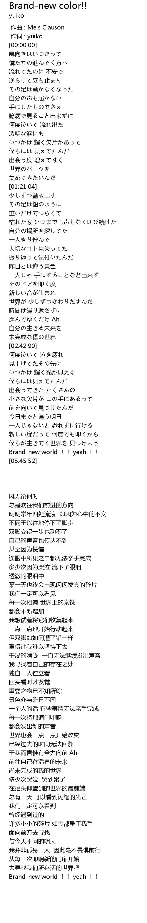 | [03:36.21] | Brandnew world !! yeah !! |