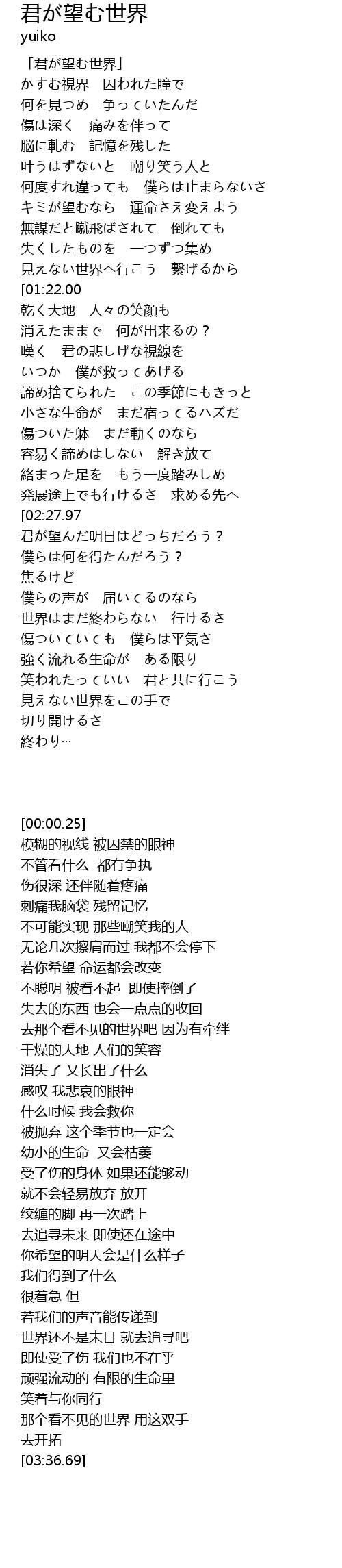 | [03:01.40] | 世界はまだ終わらない 行けるさ |