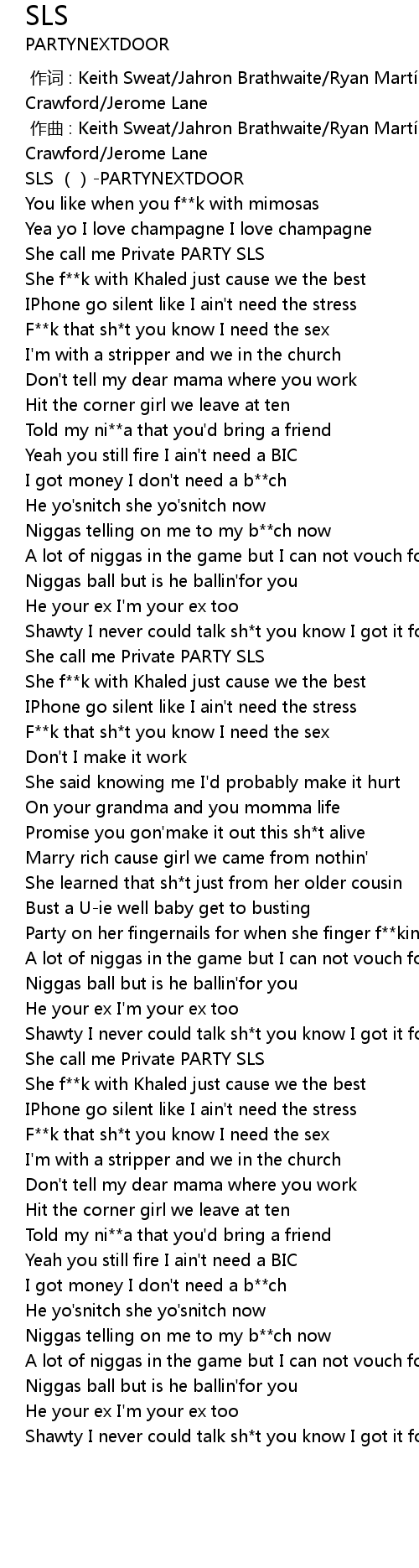 | [00:00.00] | SLS ()-PARTYNEXTDOOR |