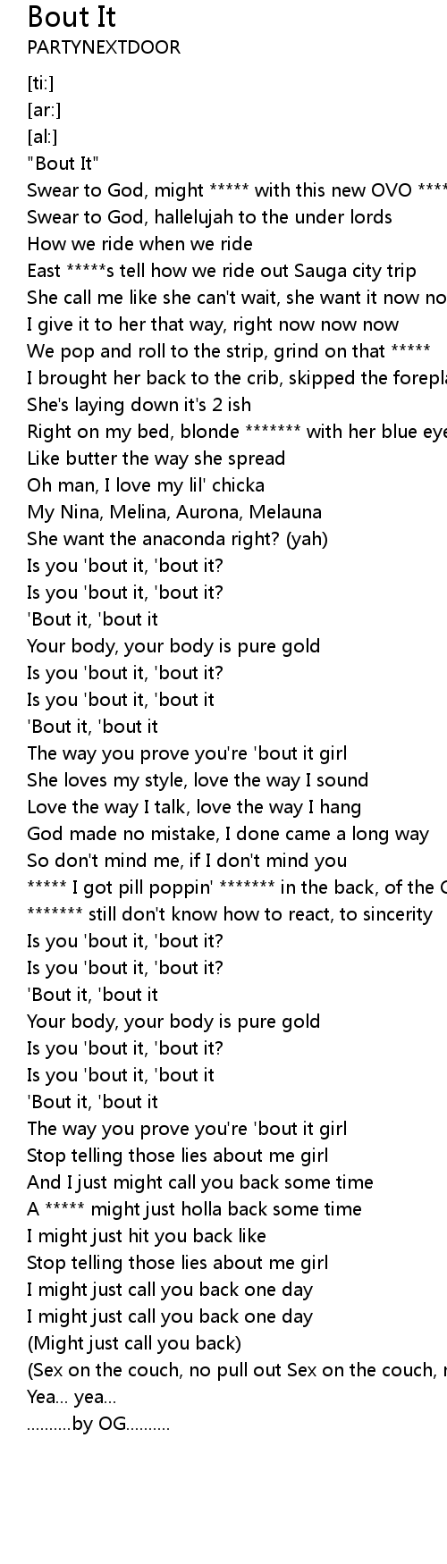 'Bout it, 'bout it |