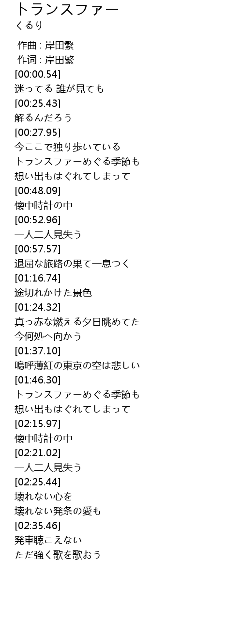 | [02:07.80] | トランスファーめぐる季節も |