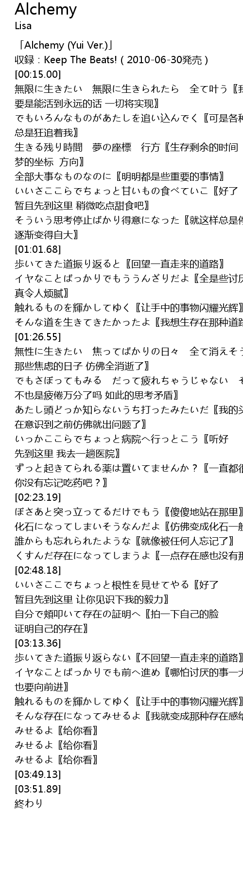 | [00:00.00] | 「Alchemy (Yui Ver.)」 |
