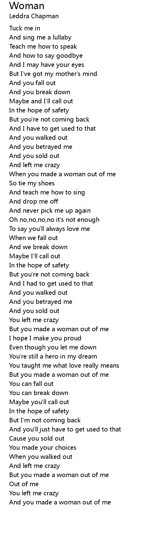 But you made a woman out of me |