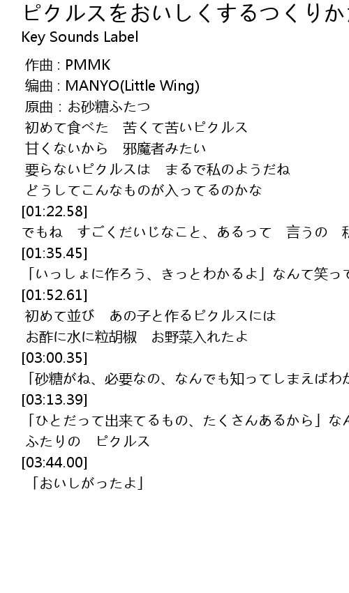| [03:33.57] | ふたりの ピクルス |