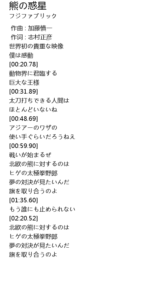 | [01:18.89] | ヒゲの太極拳野郎 |