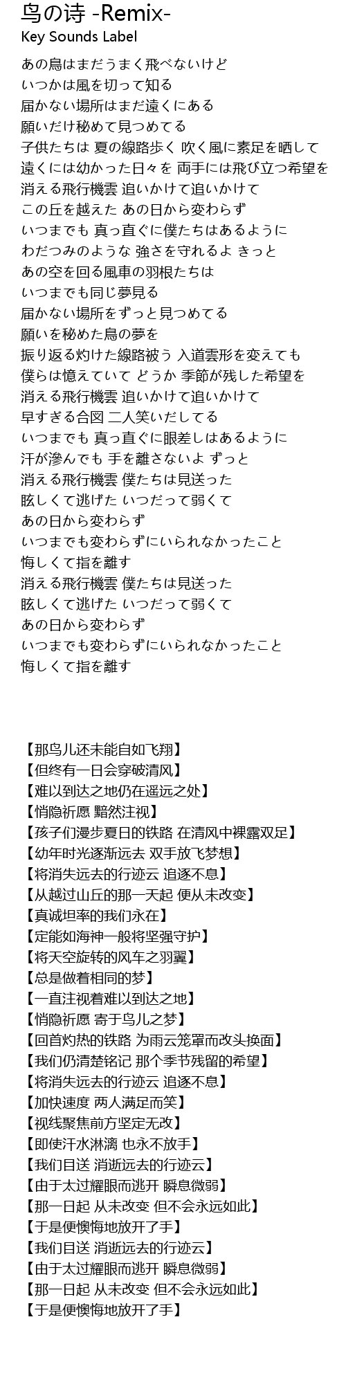 | [02:14.13] | あの鳥はまだうまく飛べないけど |