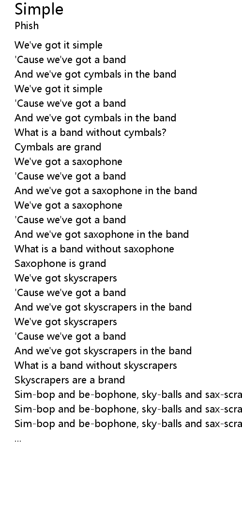 And we've got cymbals in the band |