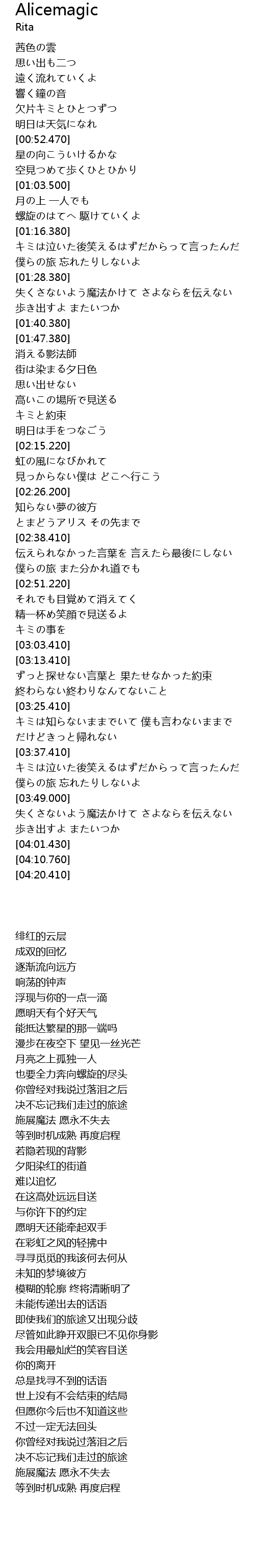 | [03:49.340] | 失くさないよう魔法かけて さよならを伝えない |