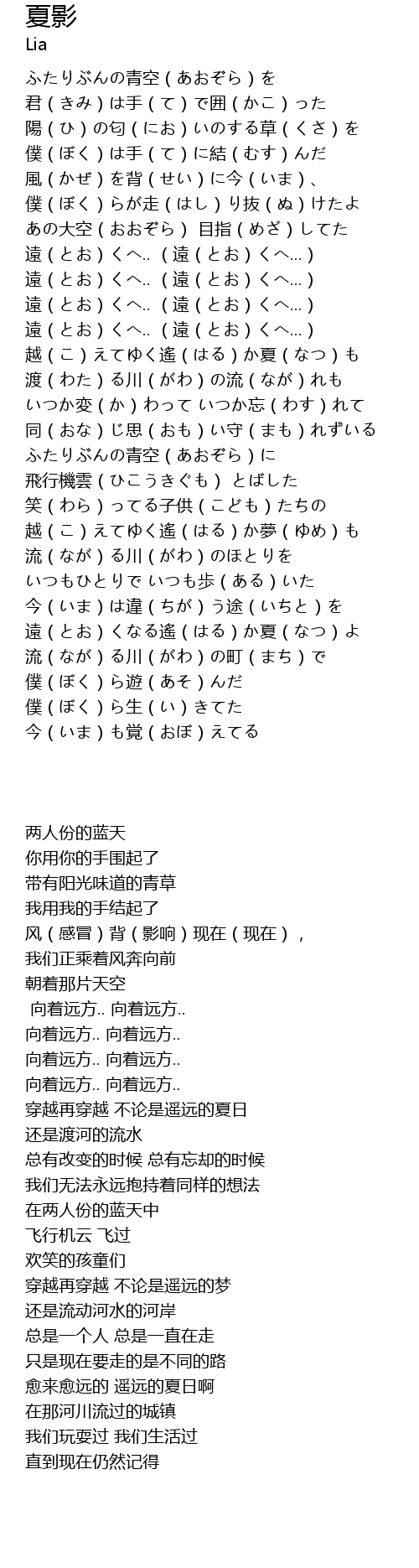 | Song | 夏影 |