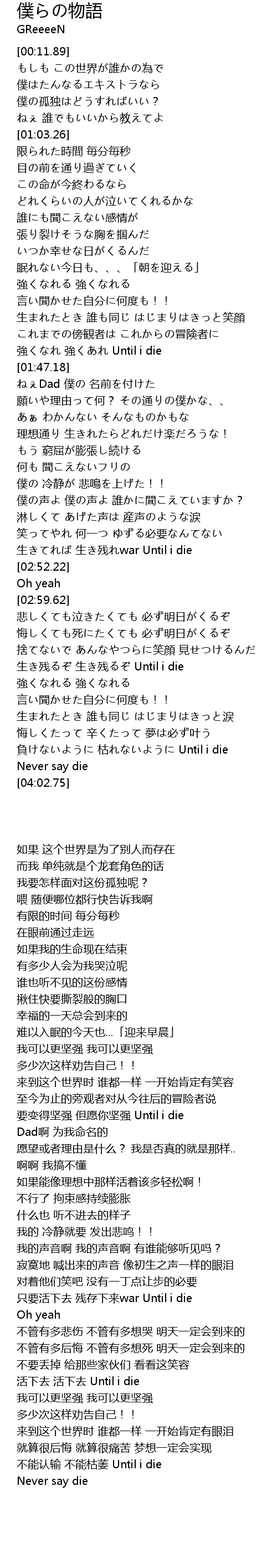 | [03:50.60] | 負けないように 枯れないように Until i die |
