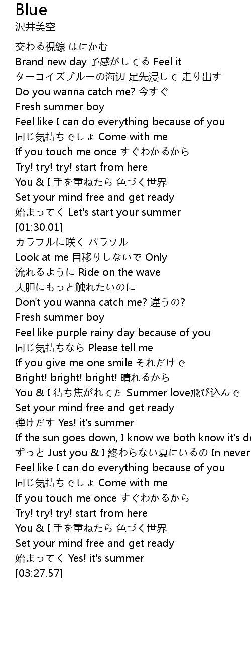 | [02:26.63] | You & I 待ち焦がれてた Summer love飛び込んで |