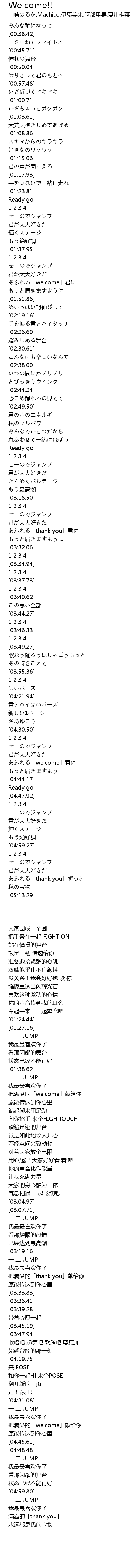 | [01:44.38] | あふれる「welcome」君に |