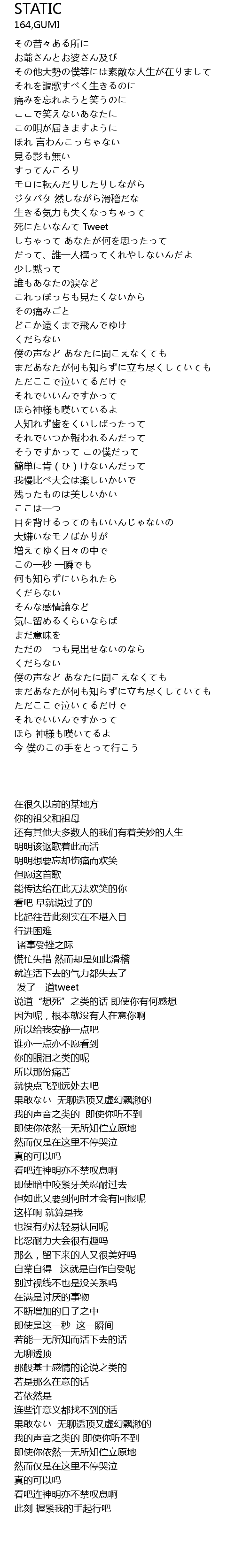 | [00:39.98] | 死にたいなんて Tweet |