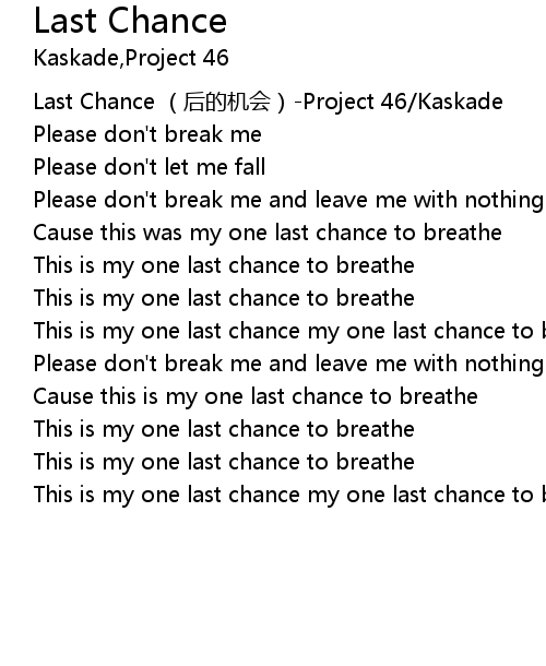 | [00:00.00] | Last Chance (后的机会)-Project 46/Kaskade |