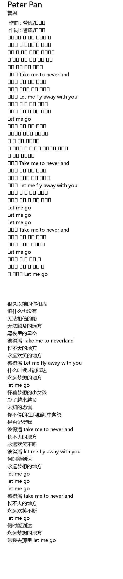 | [03:22.720] | 피터팬 Take me to neverland |