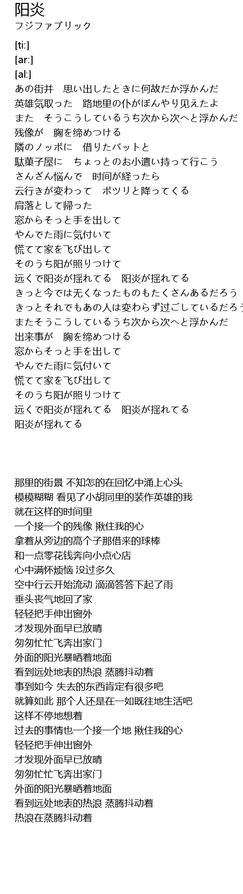 | [03:18.00] | 远くで阳炎が揺れてる 阳炎が揺れてる |