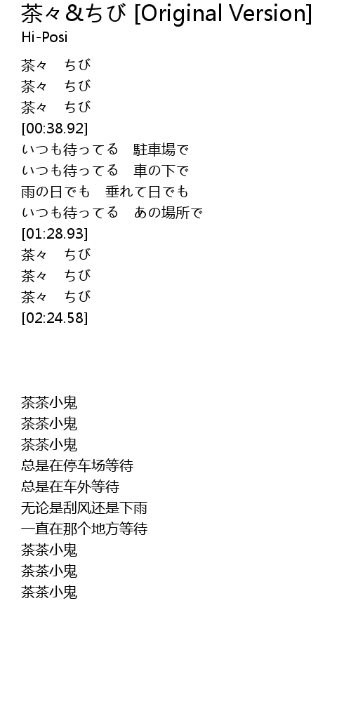 | [02:18.94] | 茶々 ちび |