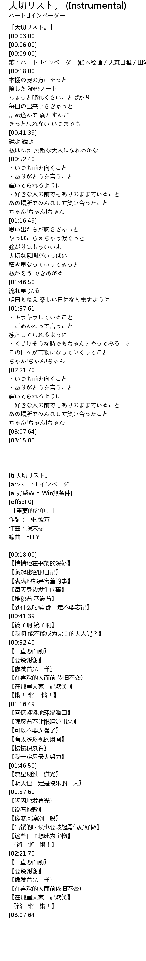 | [00:00.00] | 「大切リスト。」 |