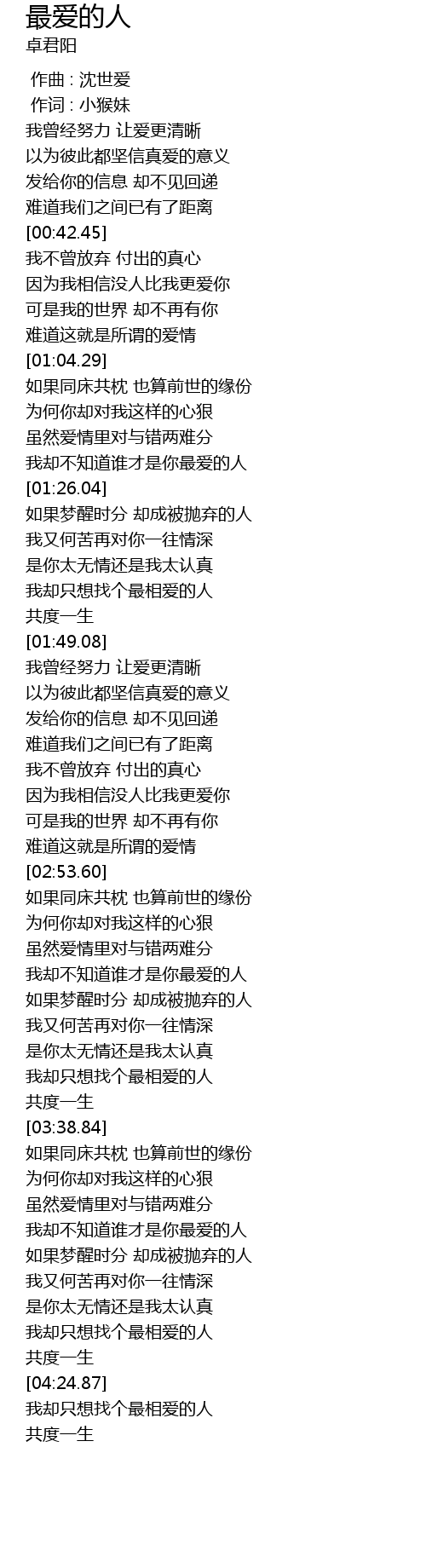 | [01:41.42] | 我却只想找个最相爱的人 |