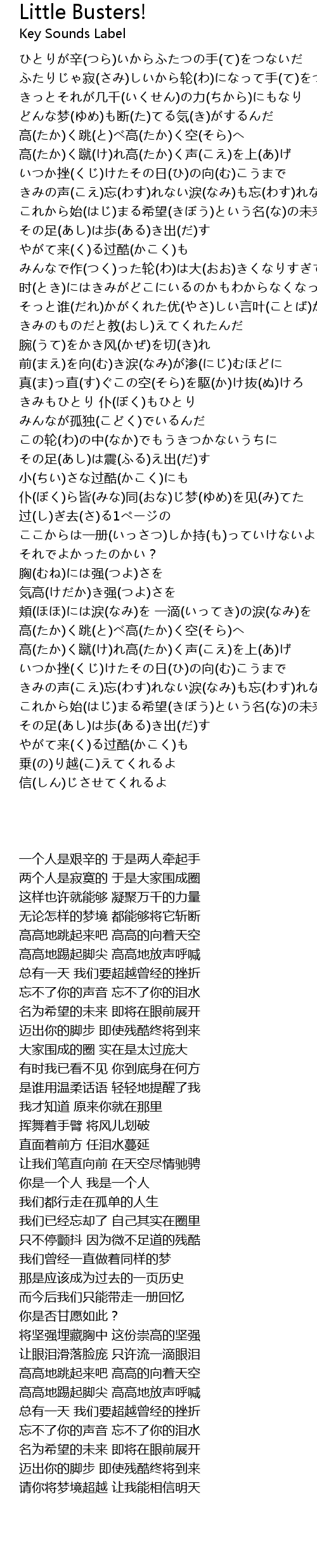 | [01:06.960] | 高(たか)く蹴(け)れ高(たか)く声(こえ)を上(あ)げ |