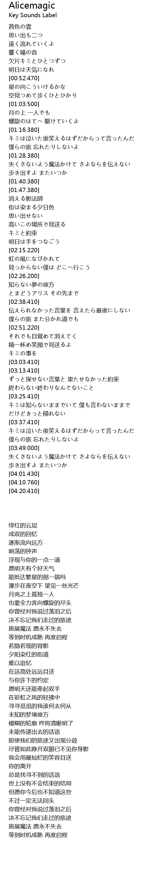 | [03:49.340] | 失くさないよう魔法かけて さよならを伝えない |